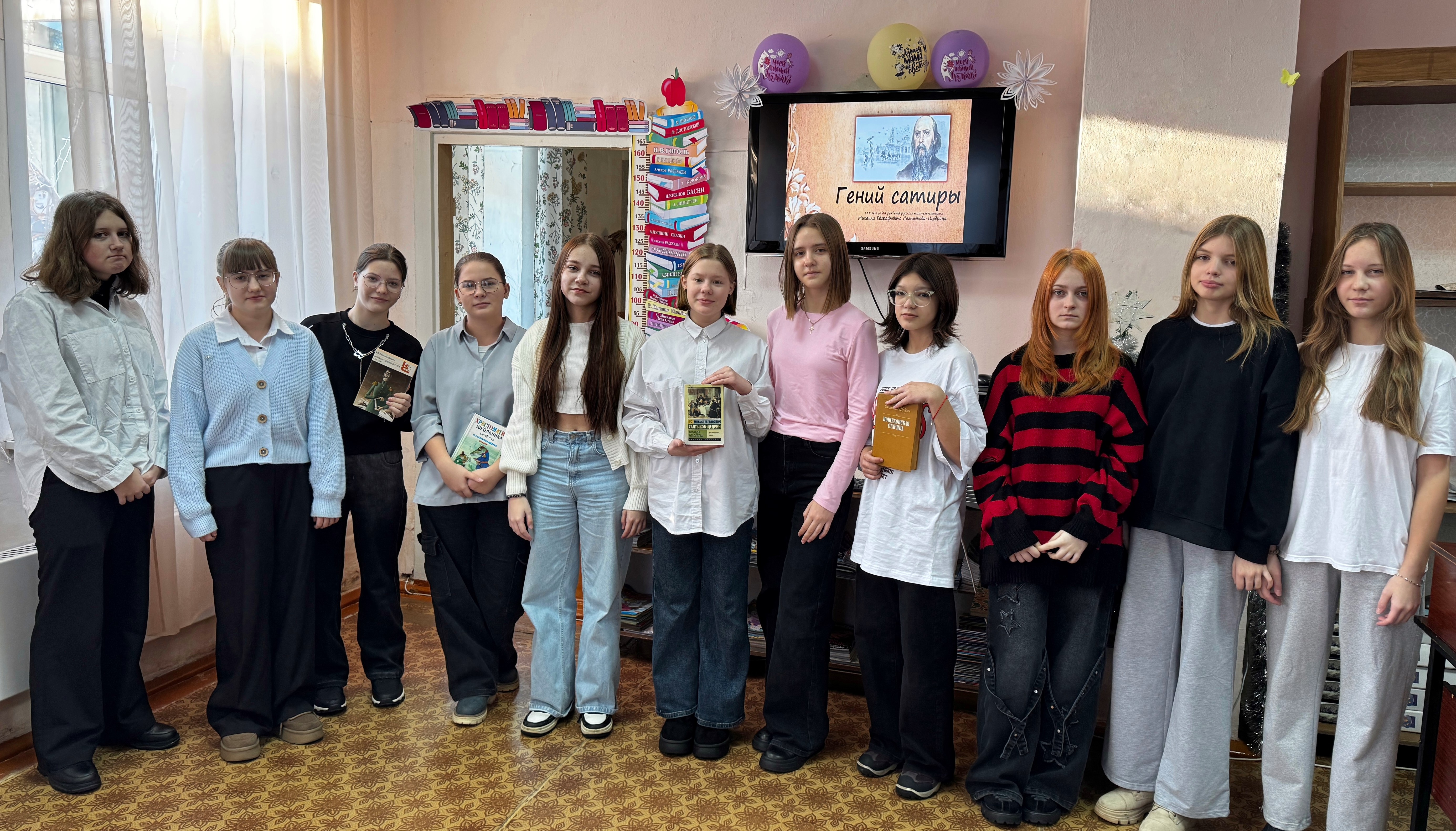 С помощью слайд-презентации «Гений сатиры» библиотекарь познакомила школьников с основными этапами жизненного и творческого пути Салтыкова-Щедрина. Более подробно остановились на детстве писателя, события которого отразились на всей дальнейшей жизни Михаила Евграфовича и определили его творческую направленность.
