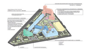 В частности, здание нынешнего культурного центра демонтируют и возведут здесь многофункциональный культурно-досуговый центр (площадь 23 500 квадратных метров) с концертным залом, научно-технической библиотекой, студиями, музеем. Спортивно-оздоровительный комплекс расширят до 25 000 «квадратов» за счет регбийного поля — там будут 25-метровый бассейн, спортивные залы для разных видов спорта. Также появятся лабораторный комплекс, коворкинг, фаблаб (обучающие мастерские), технопарк, IT-центр, уличный амфитеатр, кафе, магазины здорового питания, административные помещения, подземные паркинги, башня очистки воздуха и даже(!) часовня.