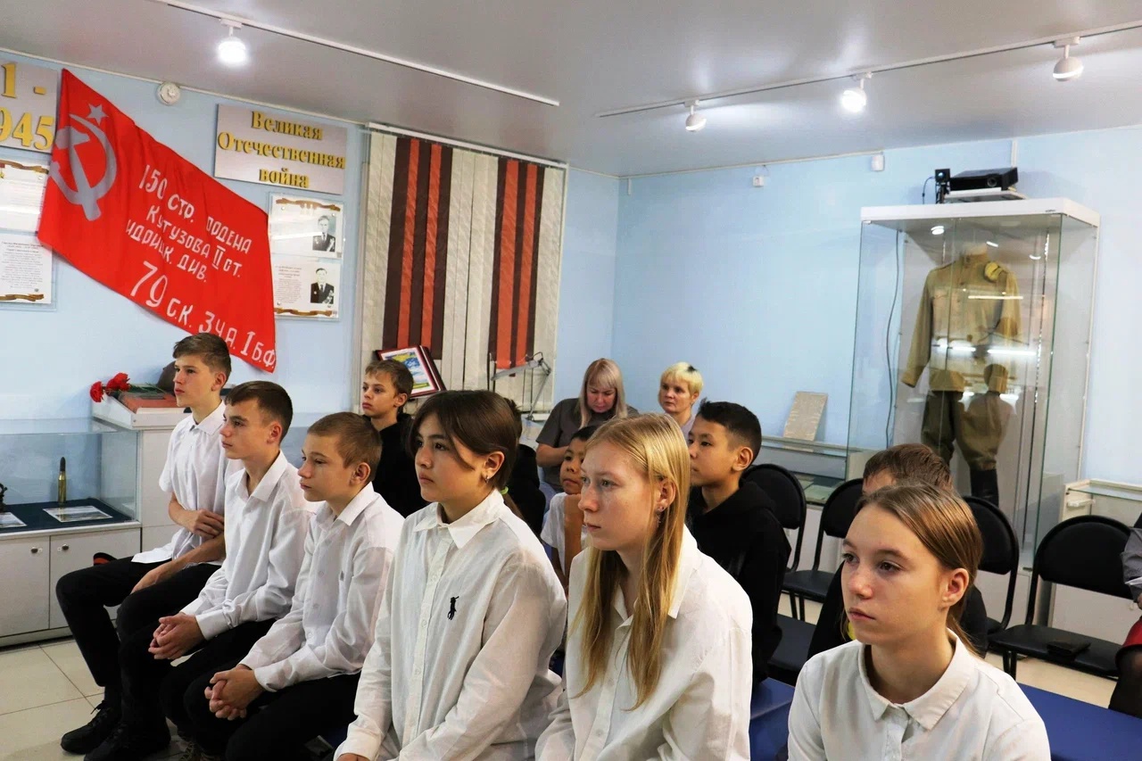 Междуреченские школьники уже начали принимать участие в мероприятиях, посвящённых предстоящему 80-ти летию Победы. Для воспитанников детского дома «Единство» и социально-реабилитационного центра для несовершеннолетних в зале воинской славы городского краеведческого музея прошло музейное занятие «Детям о детях войны».
