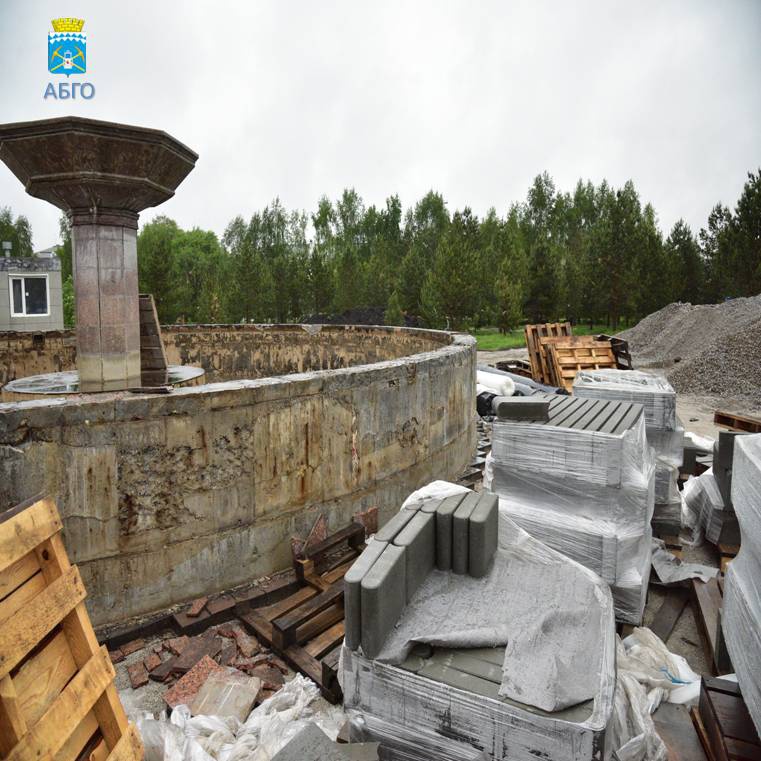Параллельно ведутся работы по демонтажу облицовки фонтана.