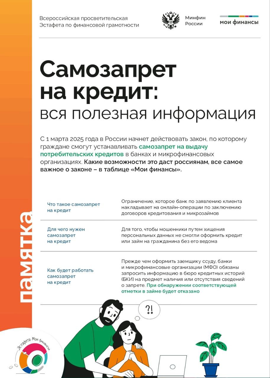 С 1 марта 2025 года россияне смогут устанавливать самозапрет на выдачу потребительских кредитов и микрозаймов.