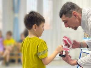 Максим Юрьевич объяснил дошкольникам, почему не надо бояться лечить зубы, предложил поиграть в стоматологический кабинет, объяснил мальчишкам и девчонкам о важности ухода за зубами и своевременного посещения врача-стоматолога.